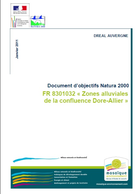 Le Document d’Objectifs (DOCOB)"zones alluviales de la confluence Dore- Allier" a été réalisé par le bureau d’études Mosaïque environnement et validé par le comité de pilotage en septembre 2010.